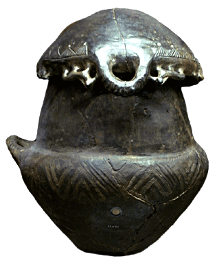 Cinerary Urn with modelled figures and decoration. ca.750 BC. Monte Scudaio, Volterra. MAF.